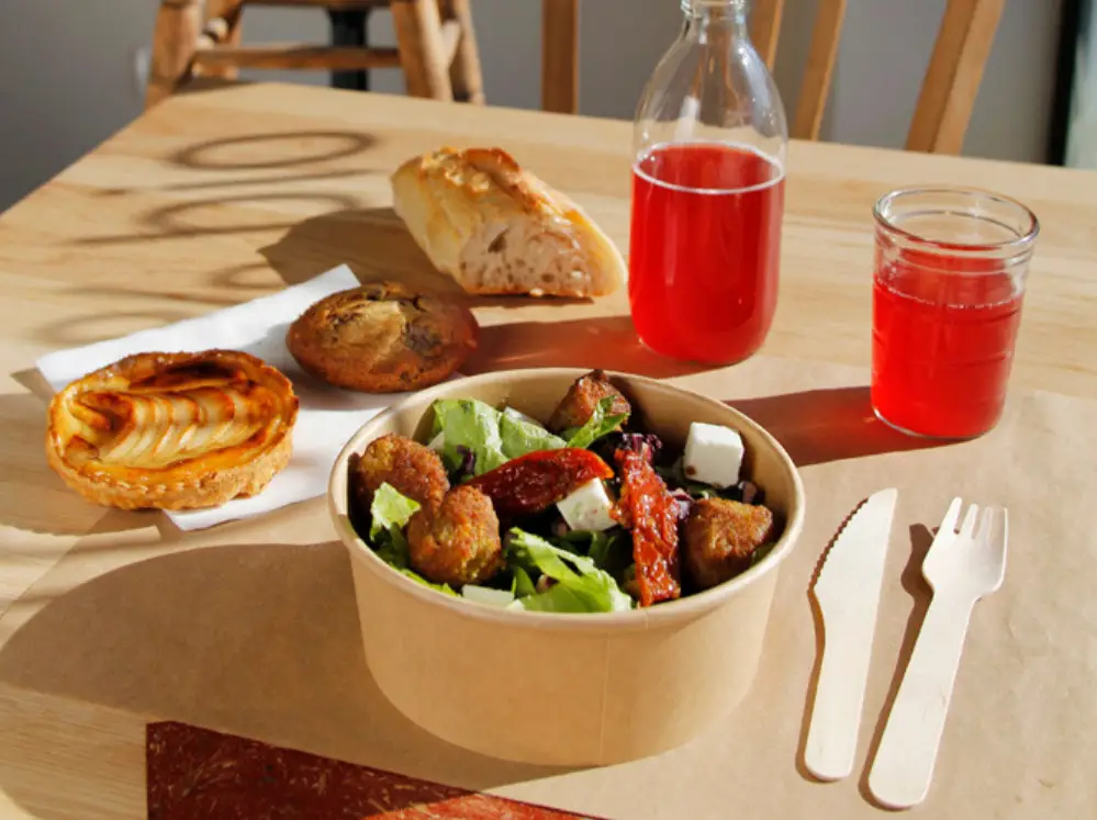Nous possédons également une gamme traiteur pour le midi avec des sandwichs, des pizzas, des salades et des quiches faites à partir des produits du magasin !